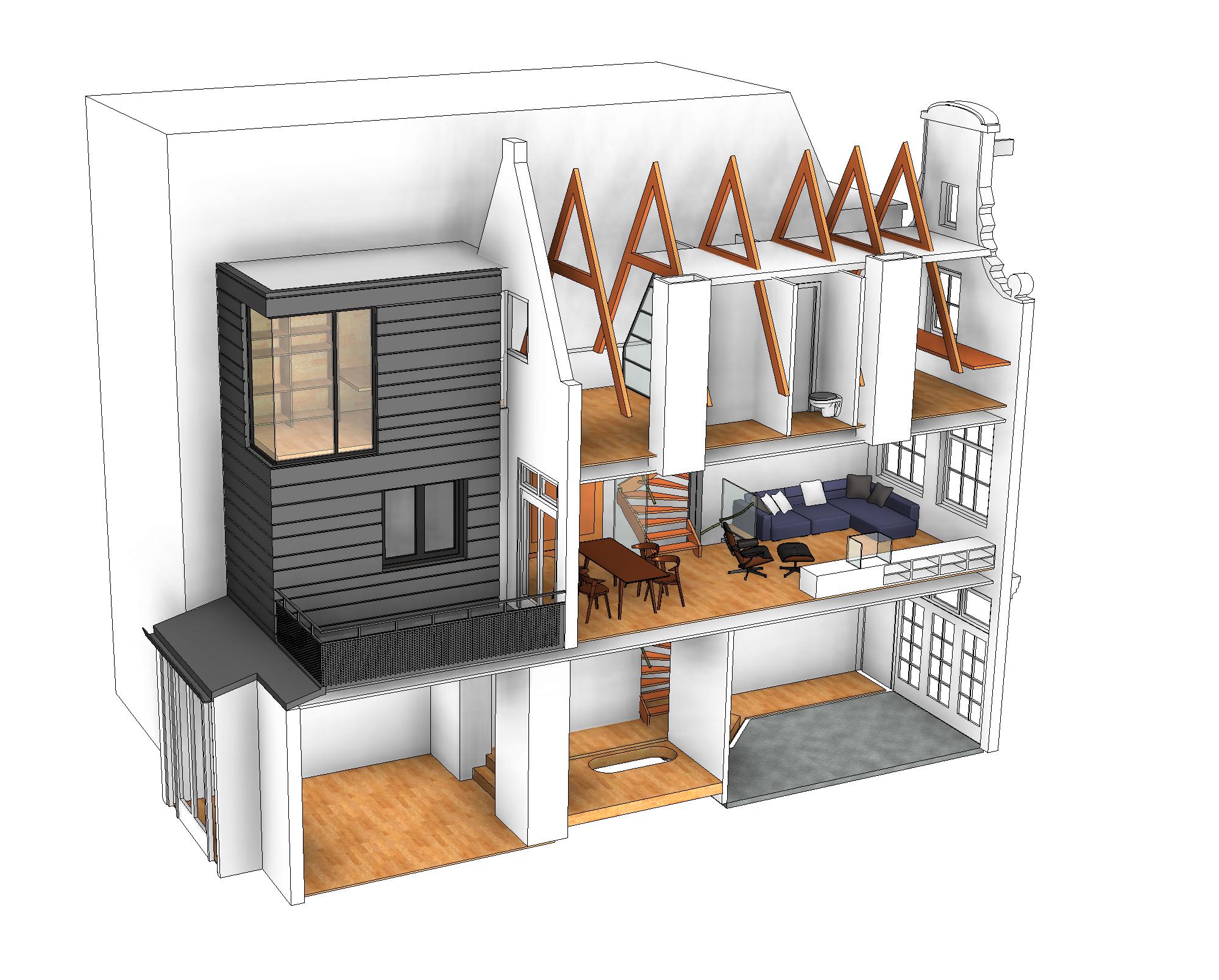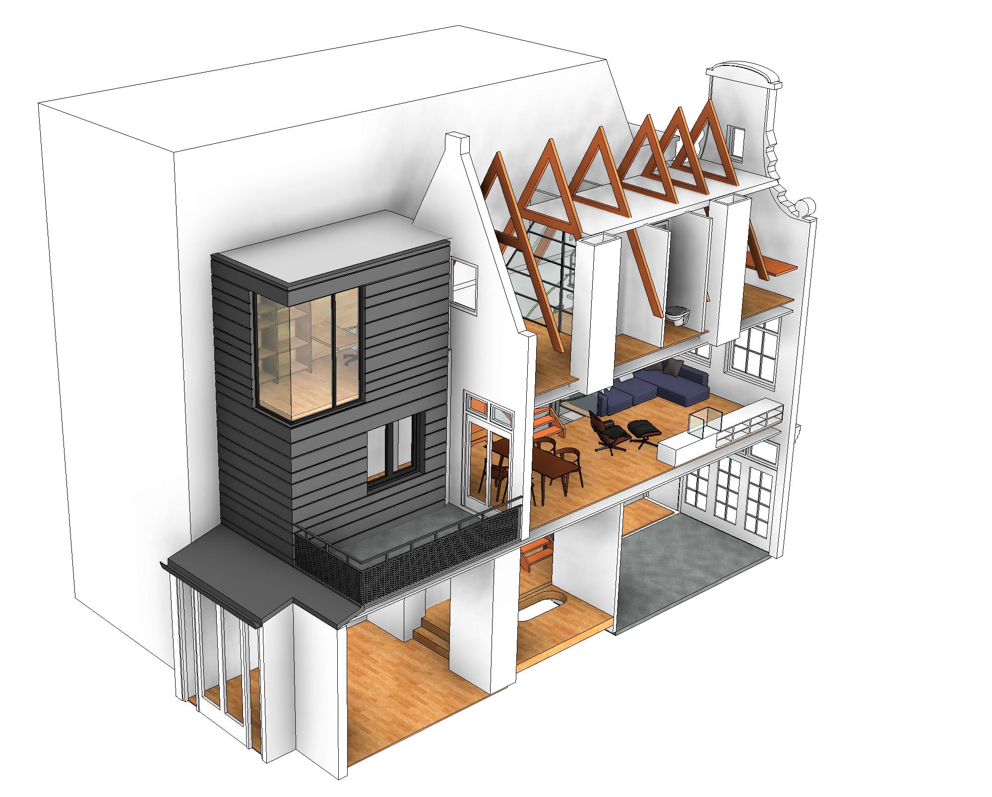 We recently designed a small extension and new interior for a monument in the center of Amsterdam.