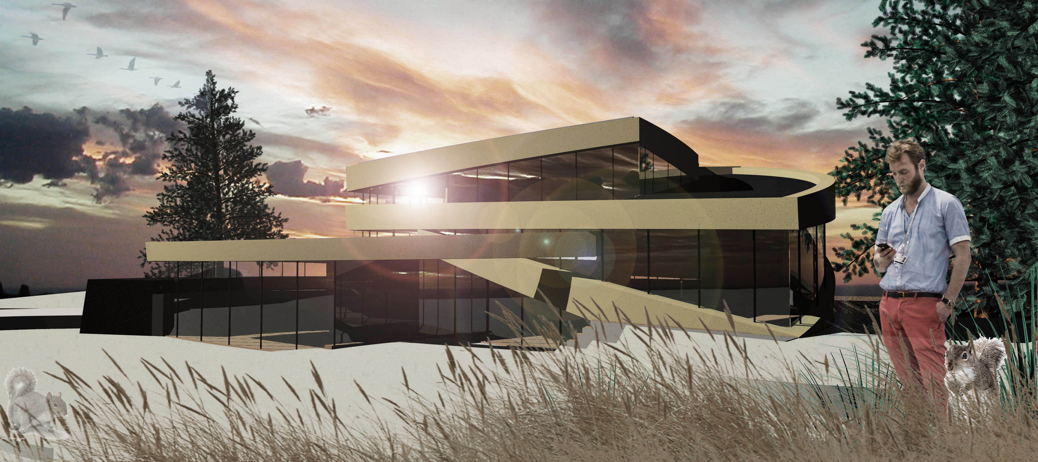 ’The Spiral’ vormt de basis van het ontwerp;als een lint van natuursteen omvat zij alle pragmatischevolumes.