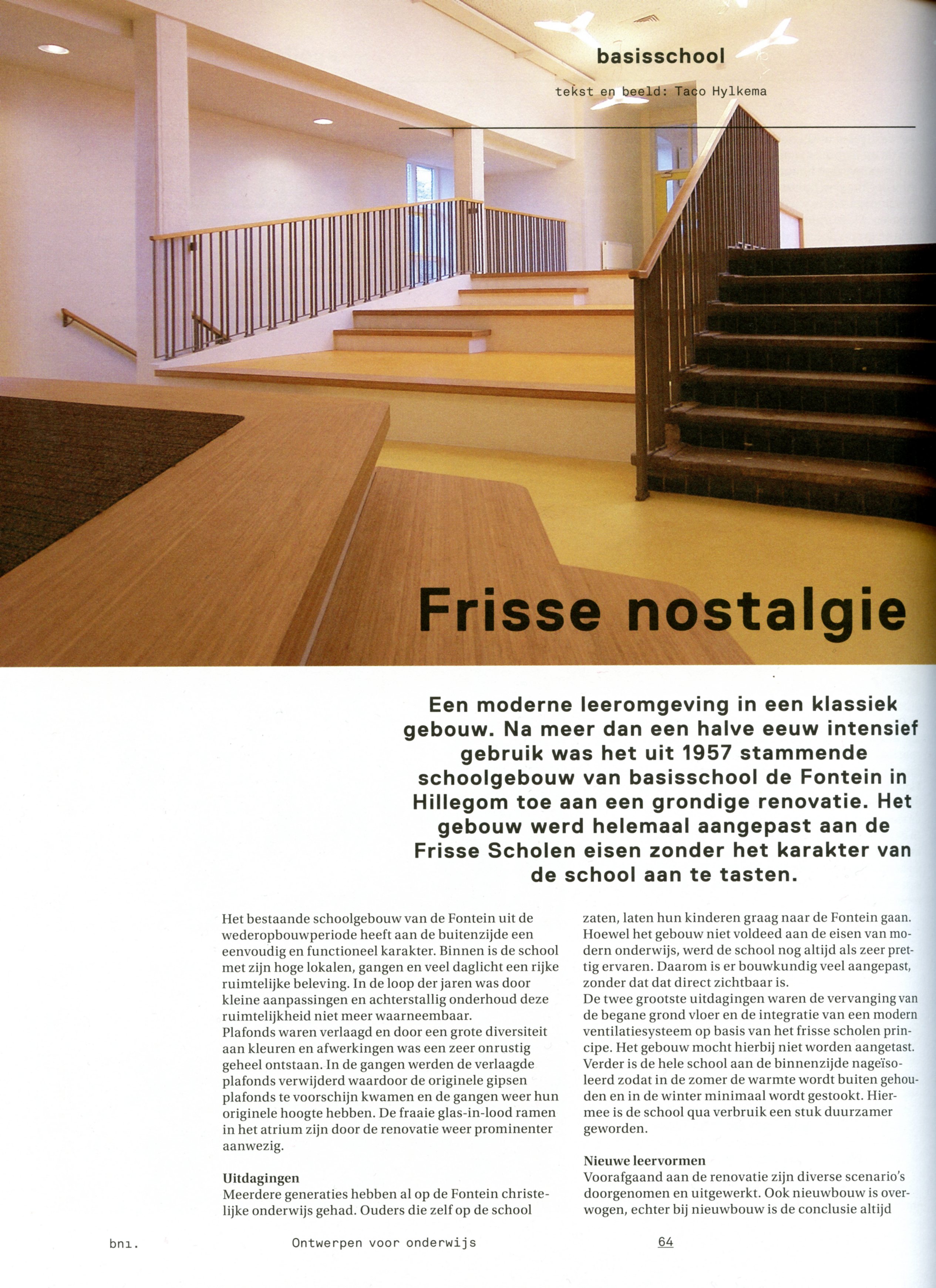 De leerlingen van de ONS konden afgelopen mei na een periode van verbouwen weer terug naar hun oude vertrouwde plek in de Ribesstraat. De school uit 1930 is volledig verbouwt aan de binnenzijde en oogt modern en fris maar met respect voor de details uit het verleden.