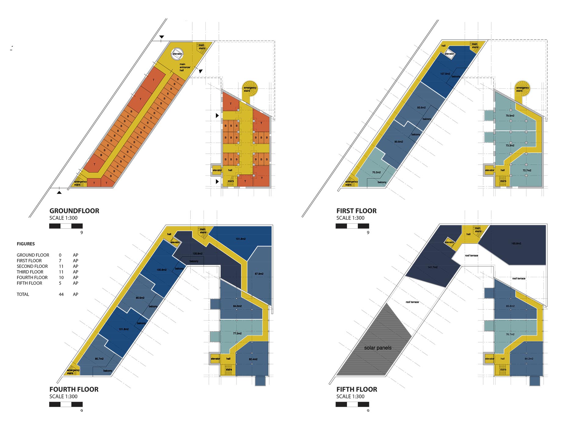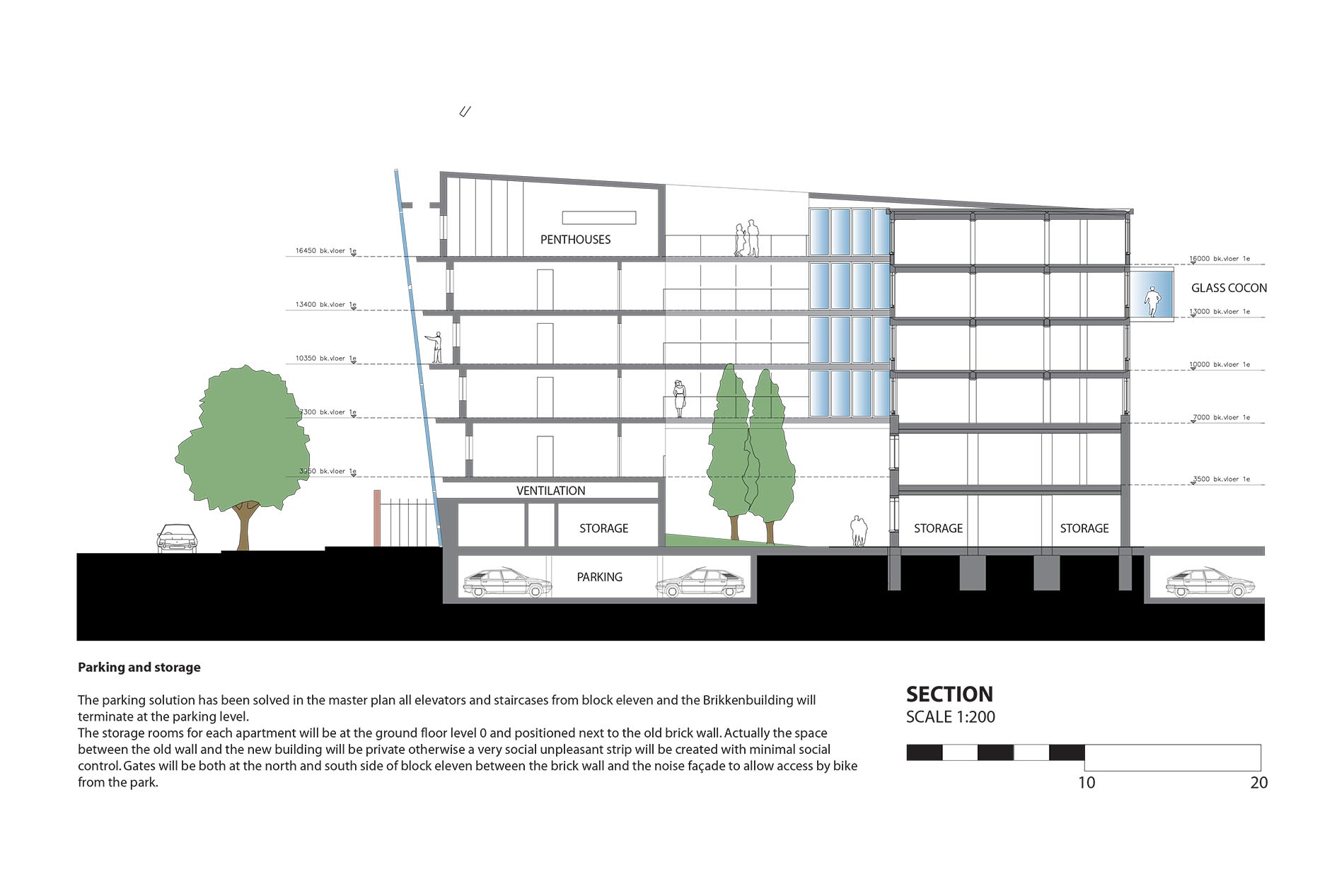 The approach of ‘Another brick in the wall’ is out of the box in the box. The already developed urban plan for the sphinx area is very rigid in many matters. So instead of completely redesigning the master plan we made incisions within the orthogonal plan. These cut outs are based on a tracing of the pedestrian flows through the plan. Though we seriously understand the decision for Berlage like courtyards, we think the scale of the blocks is too massive in relation to the old city. Therefore we introduced an extra scale or so to say an ornamental layer which relates to the old city. This woven non orthogonal grid creates potentials instead of excluding them.